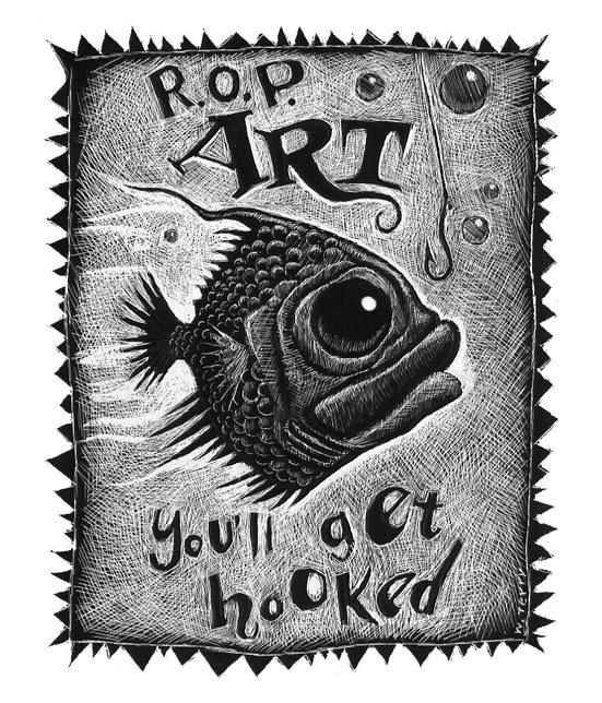 Will Terry – fish hooked by scratchboard
